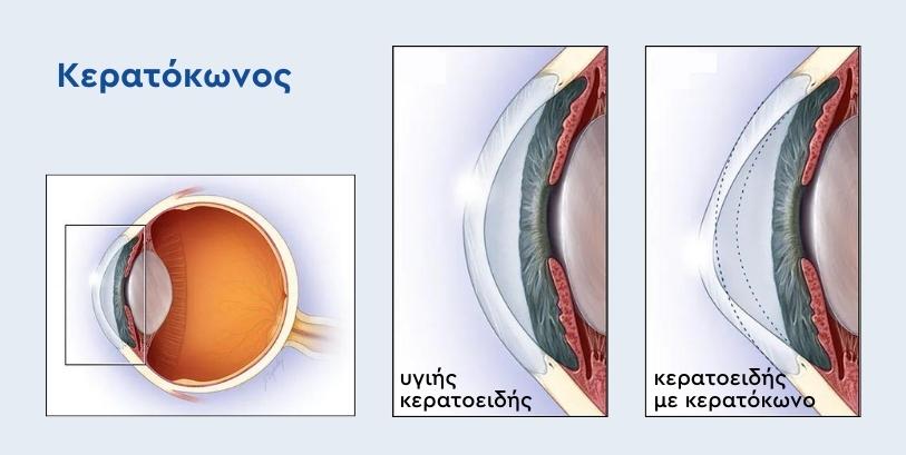 Ο κερατόκωνος προκαλεί παραμόρφωση του σχήματος του κερατοειδούς με επακόλουθη προοδευτική αύξηση του αστιγματισμού και της μυωπίας και παραμορφωμένη όραση που δεν διορθώνεται με γυαλιά.