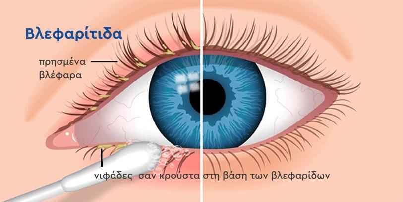 • Κρούστα ή πιτυρίδα στις βλεφαρίδες
