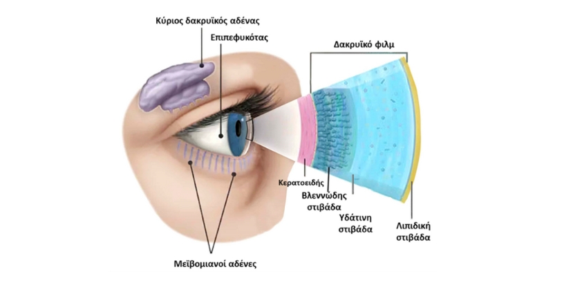 Κάθε φορά που ανοιγοκλείνουμε τα βλέφαρά μας, ένα δακρυϊκό φιλμ επικαλύπτει την επιφάνεια των ματιών κάνοντας την λεία και καθαρή, έτσι ώστε να επιτυγχάνεται διαυγής όραση. Με τη σταθερή παραγωγή των δακρύων ο οφθαλμός «λιπαίνεται» και παραμένει σε μια ξεκούραστη και αναπαυτική κατάσταση. Το «δακρυϊκό φιλμ» αποτελείται από τρεις διαφορετικές στοιβάδες καθεμιά με ξεχωριστή λειτουργία: